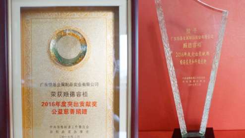 恒基公司榮獲2016年度“經濟發展和科技創新”獎及“公益慈善”突出貢獻獎